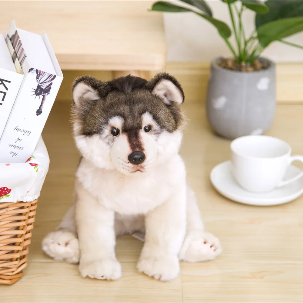 Cuddly Wolf Plush Toy Lifelike Soft Stuffed Animal Adorable Plushy Kids Doll Fluffy Birthday Gifts