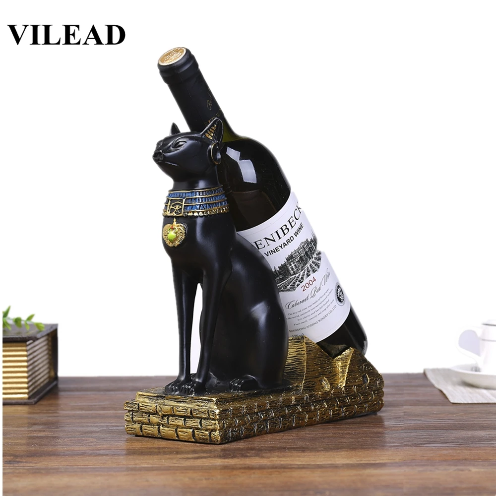 VILEAD 25cm Resin Egyptian Cat God Wine Bottle Holder Figurines Nordic Simple Animals Wine Rack Hom