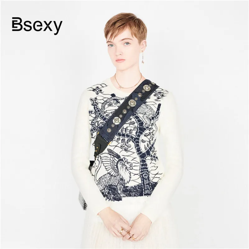 Runway Sweater Women 2019 Fashion Animal Embroidery Knitted Pullover Sweater Autumn Winter Loose Ju